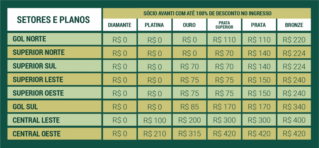 Torcedores que não fazem parte do Programa Avanti podem comprar os seus ingressos com os seguintes preços: